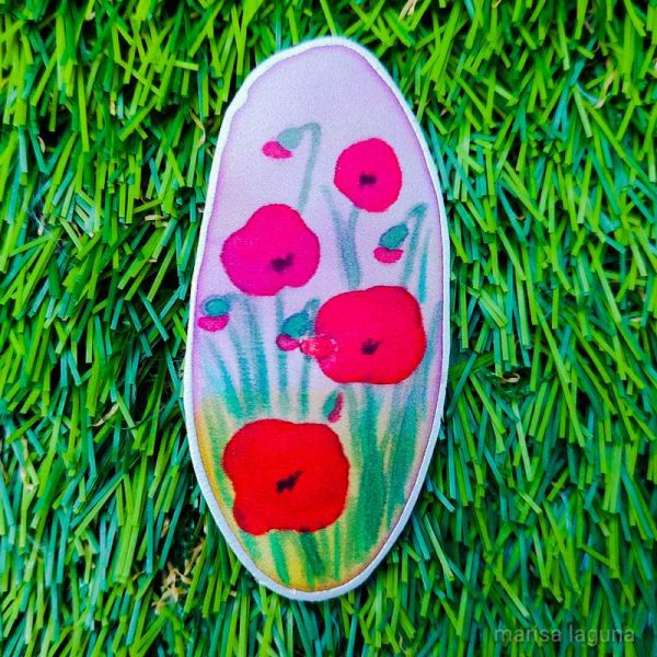 Originales y unicos broches de seda natural pintada a mano,ligeros y resistentes,piezas unicas.Medidas4x9cm.