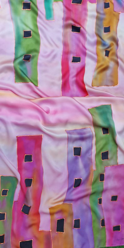 Chal de saten de seda pintada a mano. Medidas 200x70cm.