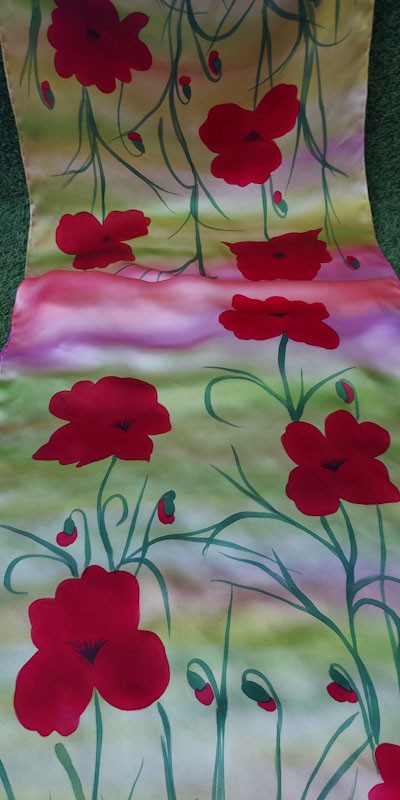 Foular de saten de seda natural,pintado y cosido a mano,diseño unico y exclusivo.Medidas 180x45cm