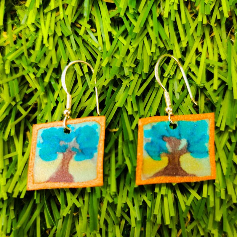 Pendientes de seda pintada a mano, ligeros y resistentes,montados en plata. Medidas 2x2cm.
